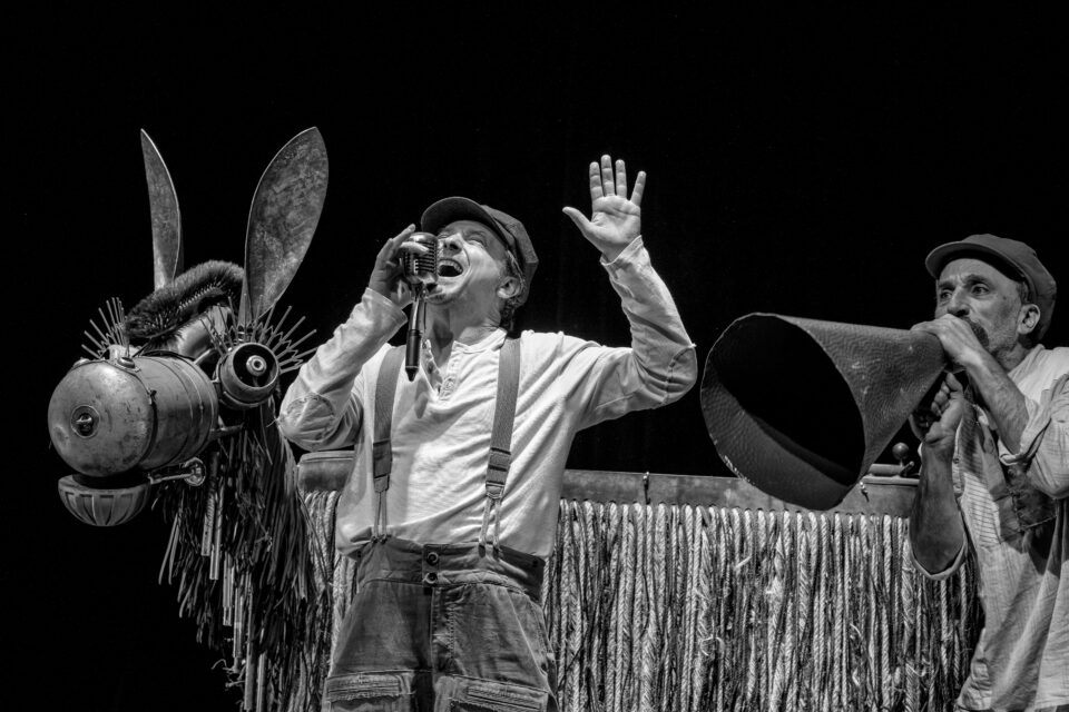 Ils veulent se raconter une dernière histoire, créer un dernier conte pour évoquer le temps qui passe et tous les souvenirs qui s’y rattachent. Ils commencent à imaginer des personnages tout en les construisant à l’aide des objets disparates qui les entourent… Ils vont nous faire découvrir les musiciens de Brême… mais c’est avant tout pour nous parler d’histoires de vies à travers celles des animaux :